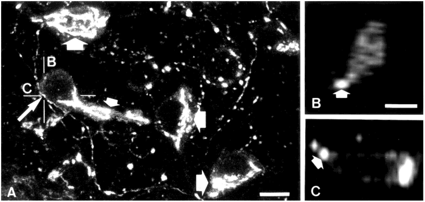 contact with an NPY1 neuron, as shown by vertical (B) and horizontal