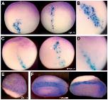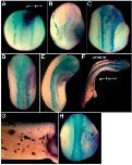 patterns stained in aqua are brachyury (C,D), BMP4 (F), or X-Delta-1 (H).