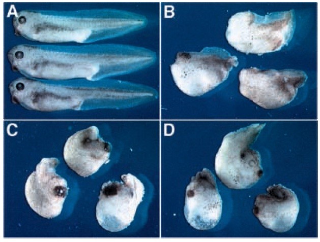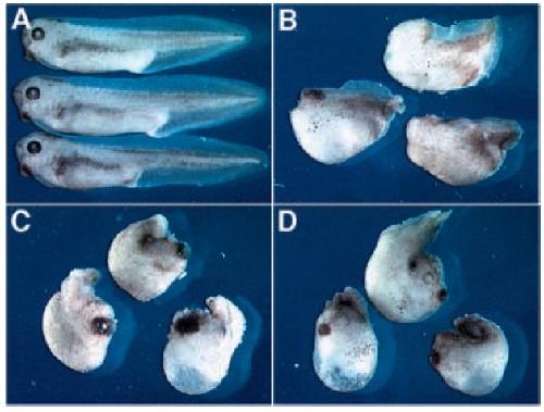 cement gland and failure to close the neural folds (C versus D), and tadpoles with