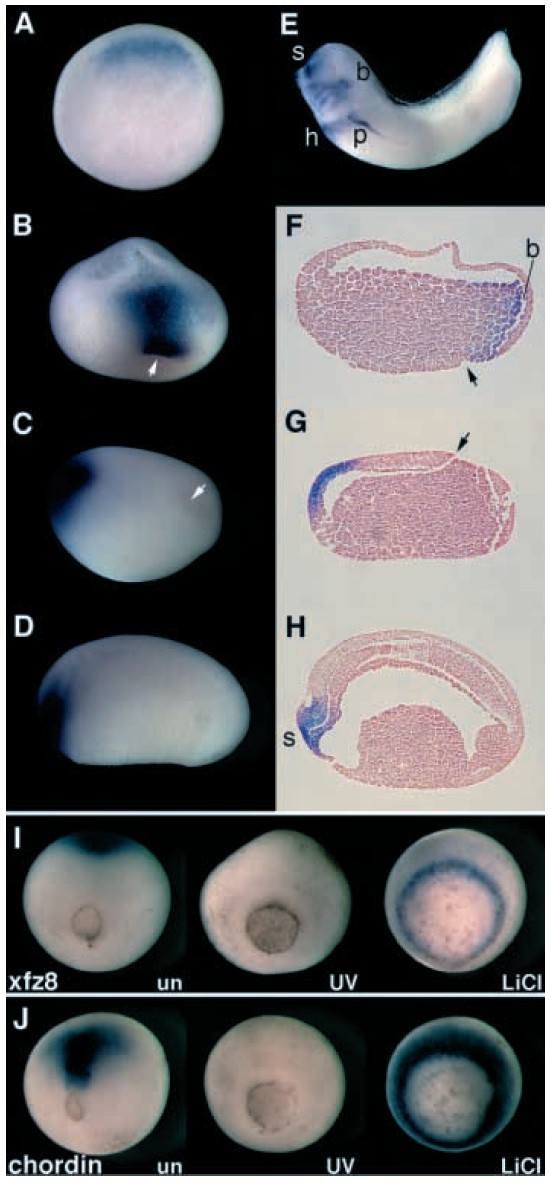 embryos were sectioned (F-H). The dorsal blastopore lip is indicated