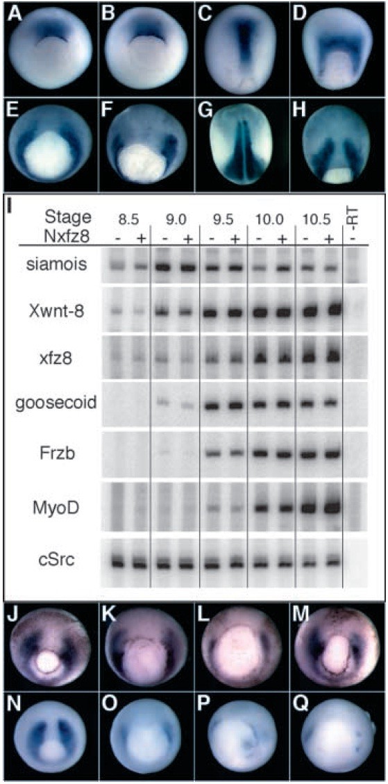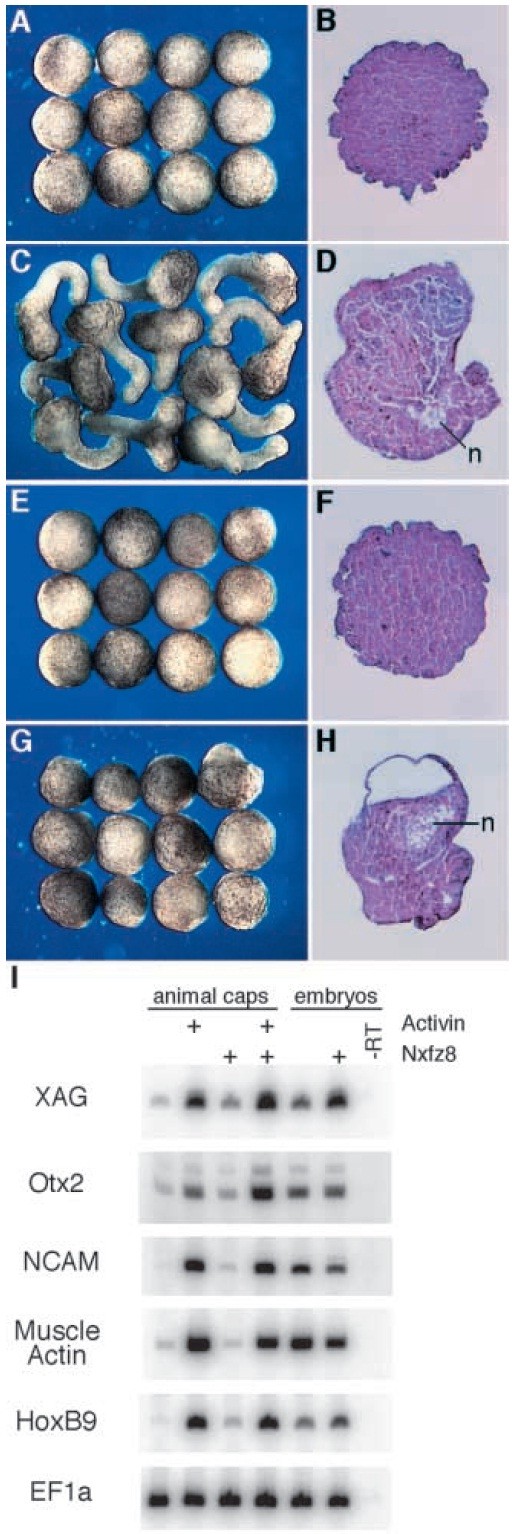 (I). Embryos were injected with 1 ng of Nxfz8 RNA into a dorsal
