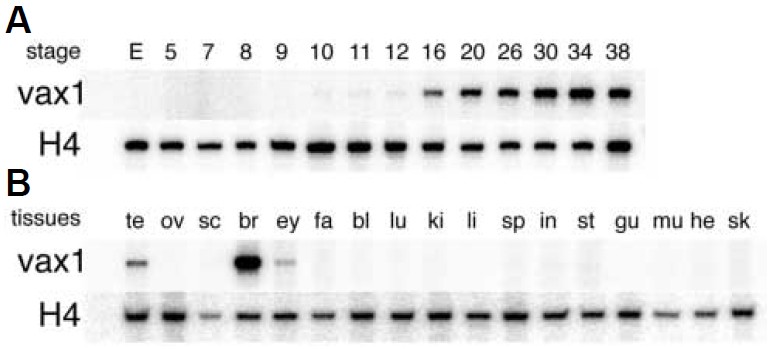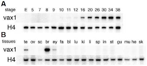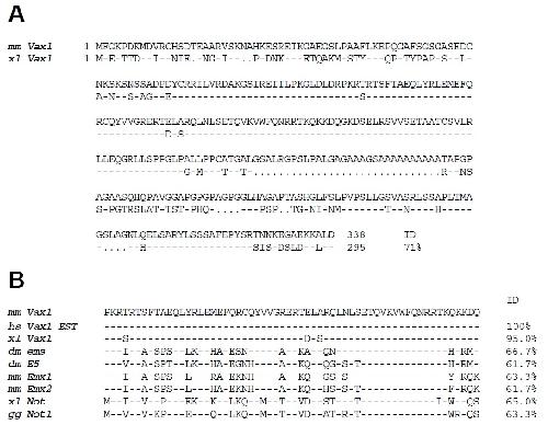 numbers for Vax1 sequences are AF064554 and AF064601. (B) Mouse and Xenopus Vax1