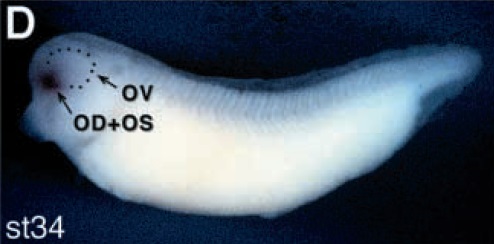 resolution, a cleared embryo at stage 34 is shown in a dorsal/lateral