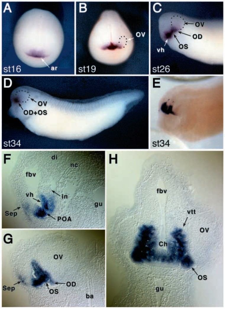 optic vesicle; sep, septal/striatal region; vh, ventralhypothalamus;