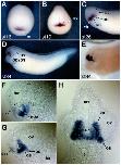 (C) Ventral/anterior view of an embryo at stage 26. XVax1 transcripts