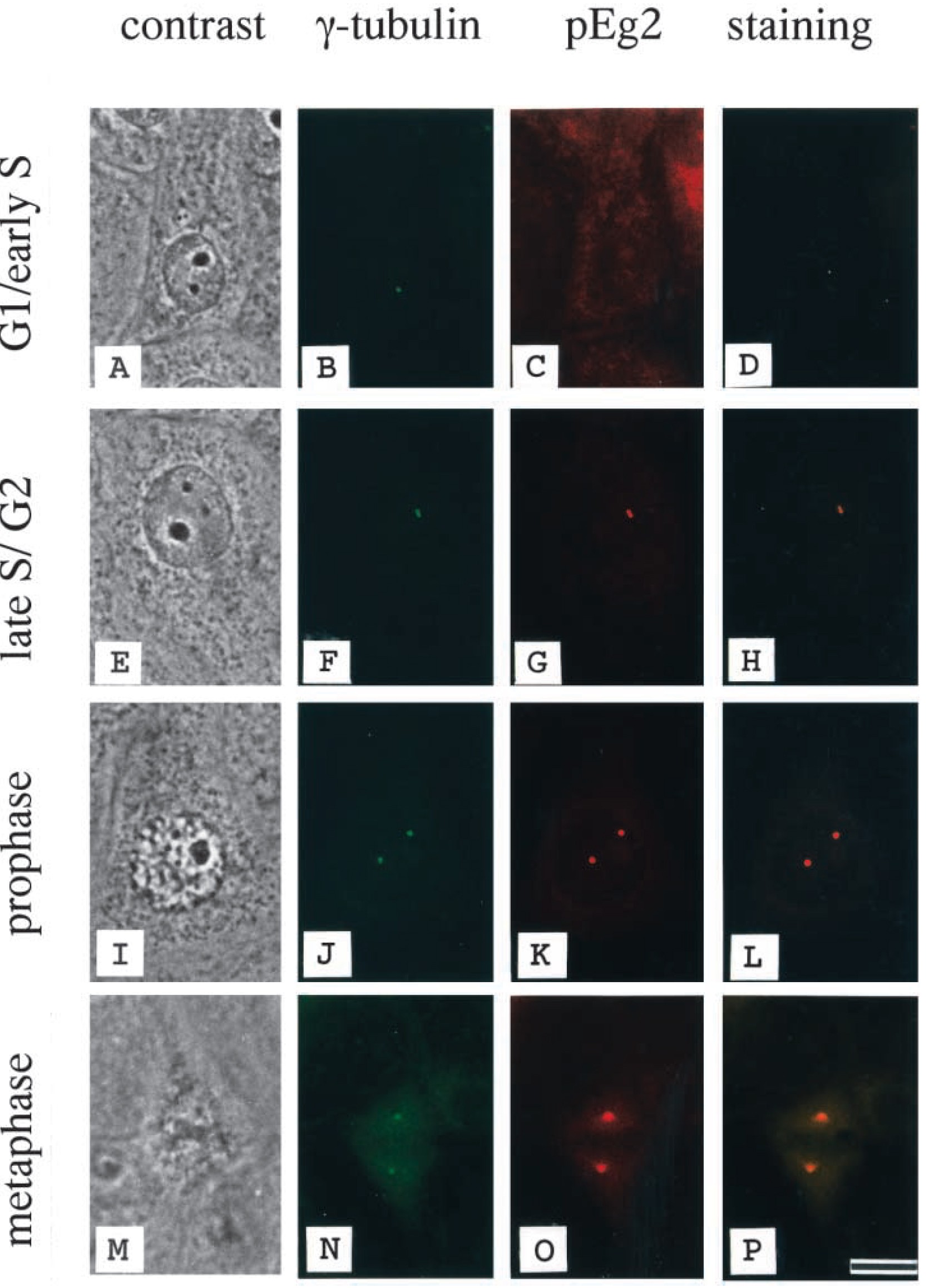 pEg2 in Xenopus XL2 cells at different stages of mitosis. Cells were