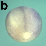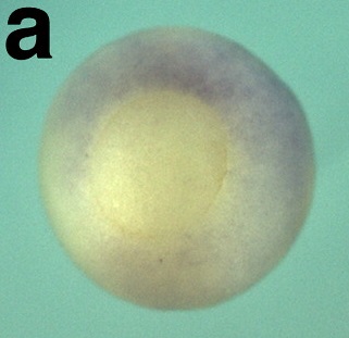 vegetal view (dorsal is to the top) and dorsal view, respectively. Panels (b) and (d) are