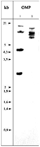 marker protein (OMP) genes XOMP1 and XOMP2. Differences in the