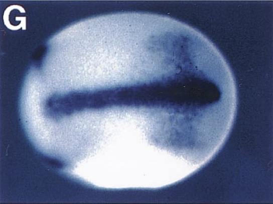 embryos stained for lunatic fringe (E), Xwnt3a (F) or Xcad3 (G) transcripts at stage 30. Reverse dorsal ventral polarity staining in the ectopic tail bud is