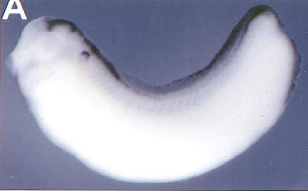 posterior of the embryo with the correct orientation. Arrows show the direction of extension of the two tail buds. (E) Examples of neural plate rotated