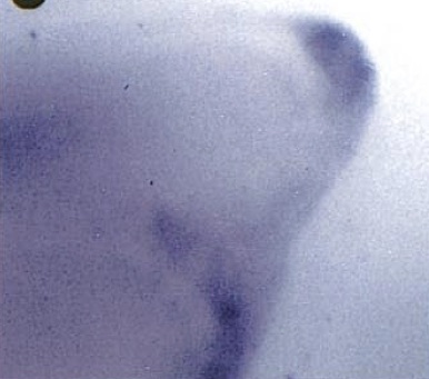 section of a stage 32 tail bud whole mount in situ hybridisation to show