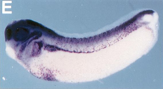 region. (D) Lack of expression of Xwnt3a in the hinge region. (E) Lack of expression of Xhox3 in the hinge region as previously reported (Ruiz-i-Altaba, 1990).