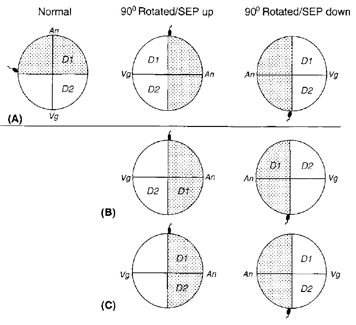 stained areas are indicated by arrowheads. An arrow shows the anterior end of the positive region. The anterior and posterior ends
