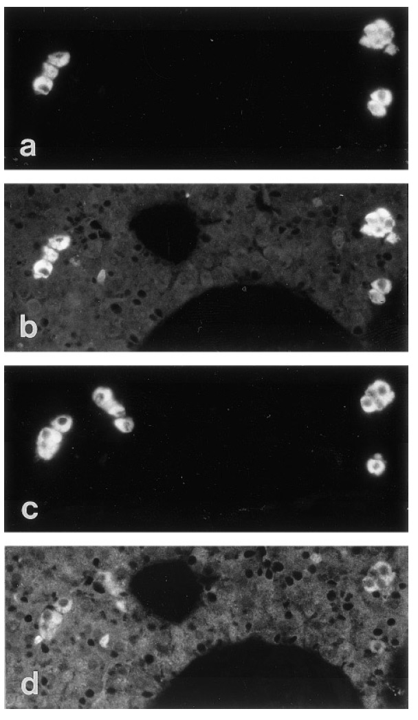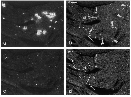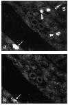 FIG. 8. Partial coexistence of GLUC (a) and IGF-I (b) immunoreactivities