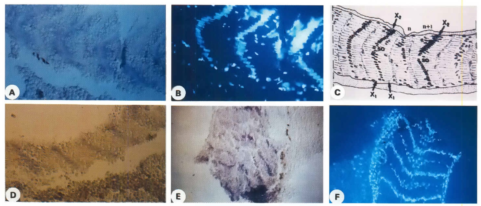 Fig. 6. NDPK X1 and NDPK X2 mRNA localization in the somites of tail bud embryos. (A-B) NDPK Xl mRNA localization. (D-F) NOPK X2 mRNA