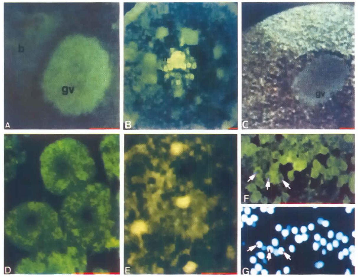center of the sam/tiC cells (D. E, F). NDPK X3 mRNA has the same localization as of NDPK Xl mRNA (data not shown). Section in 0 was revealed by the