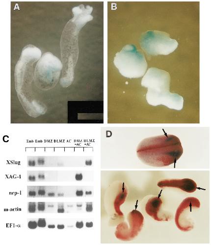 band; the upper band is cross-hybridization to cytoskeletal actin. (D) Whole-mount in situ hybridization with XSlug was performed on