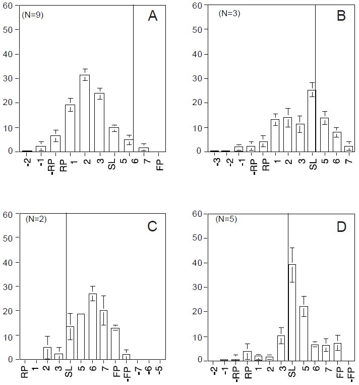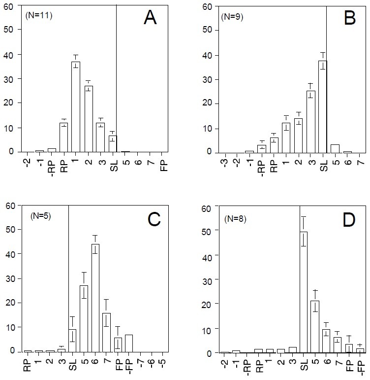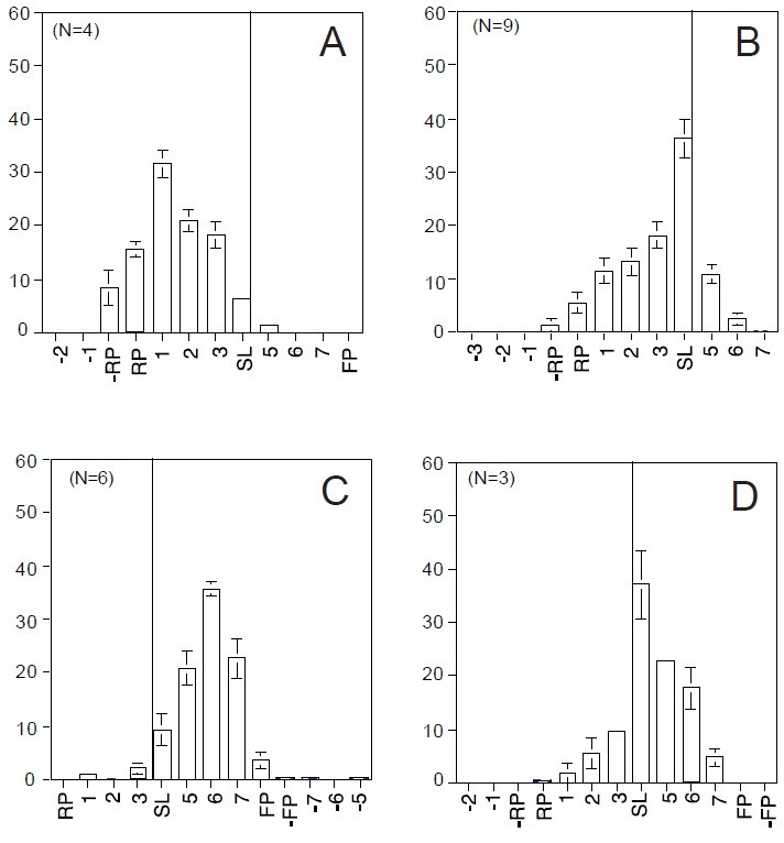 with a peak location at the sulcus limitans (Bin SL). (C) Distribution of