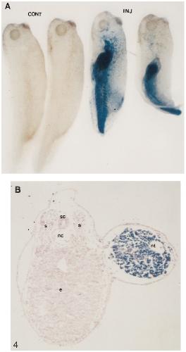 embryos injected with 0.1 ng of Xski2 RNA together with 0.1 ng of nb-gal RNA. RNAs were injected into any one blastomere of the Dtier