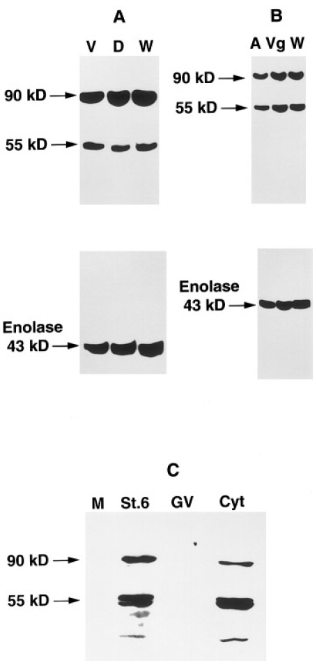 FIG. 7. Western blots of (A) early-gastrula embryos dissected into