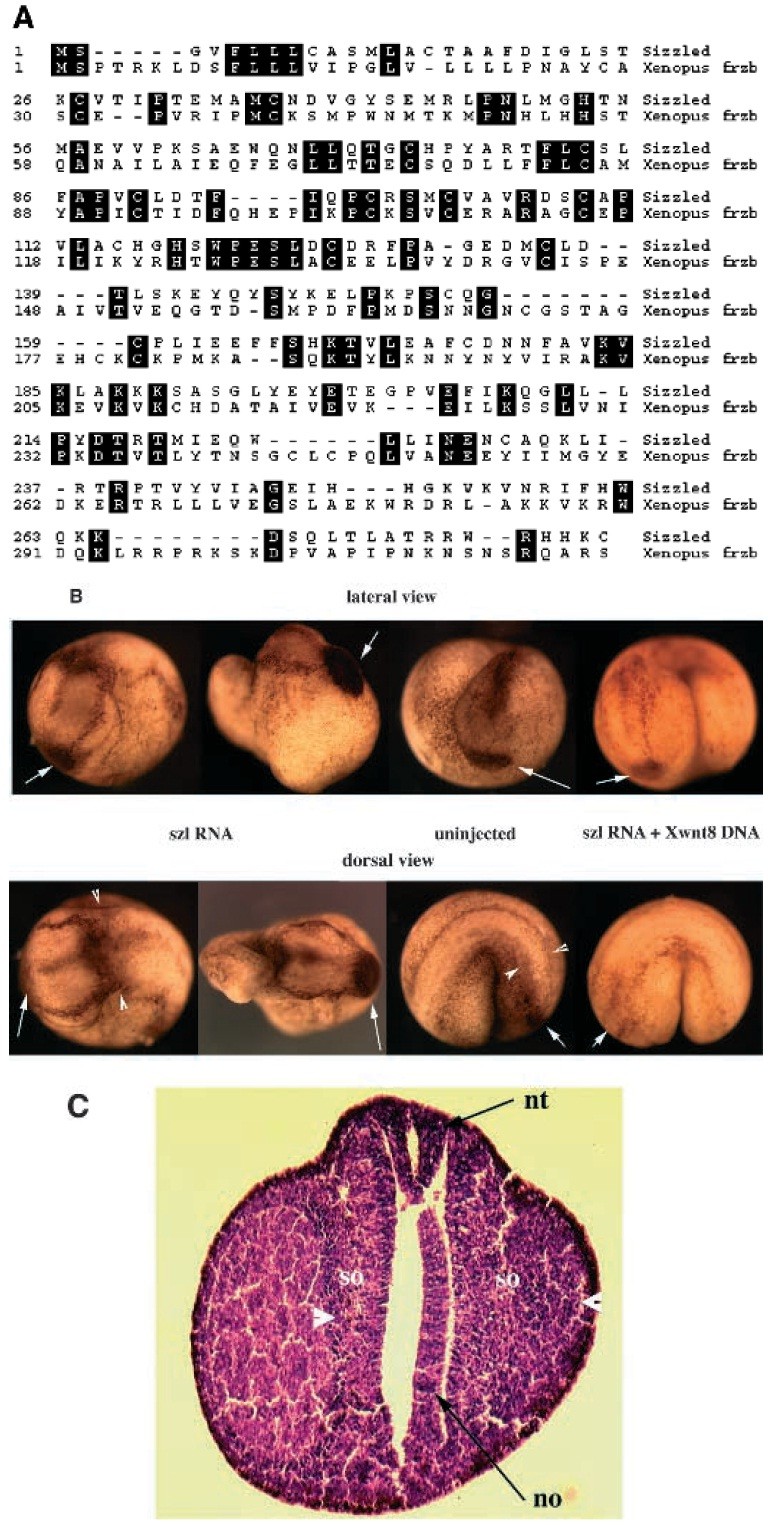 genes. (A) Sequence comparison between szl and frzb (Leyns et al.,