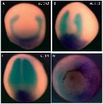magenta. The top embryos are seen from their dorsal side and have their anterior ends to the left. The