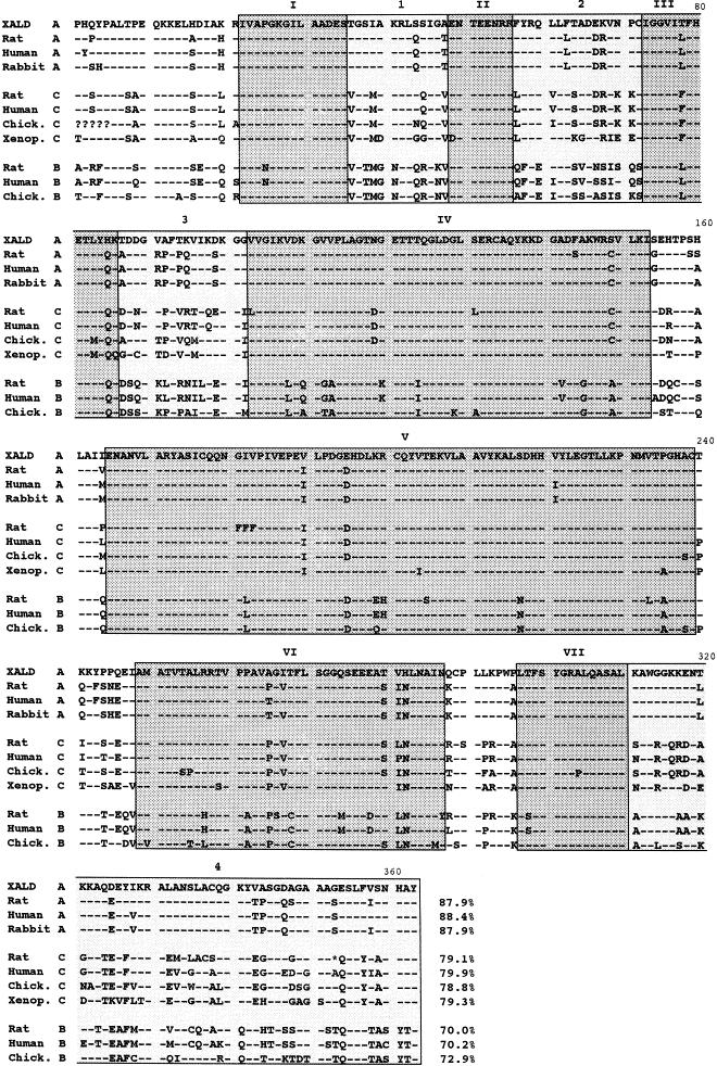 species rat, human, rabbit, and chicken.. The strongly shadowed regions I–VII. are regions highly conserved among all types of