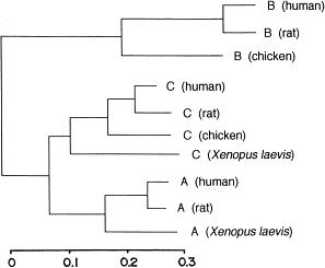 alignment is possible. The inferred tree shows that Xenopus