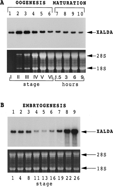 and embryos at different stages and subjected to Northern
