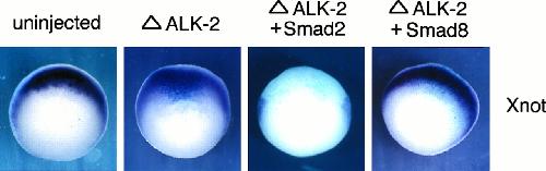 A truncated bone morphogenetic protein 4 receptor alters the fate of ventral mesoderm to dorsal mesoderm: roles of animal pole tissue in the development of ventral mesoderm.