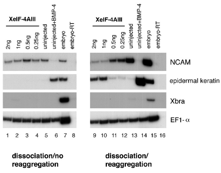 epidermis by XeIF-4AIII, but not XeIF-4E, in dissociated ectoderm cultures.