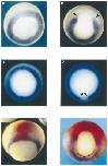 gland or the anterior of the embryo when the cement gland is absent as in the ventralized embryos in B, D, and F.