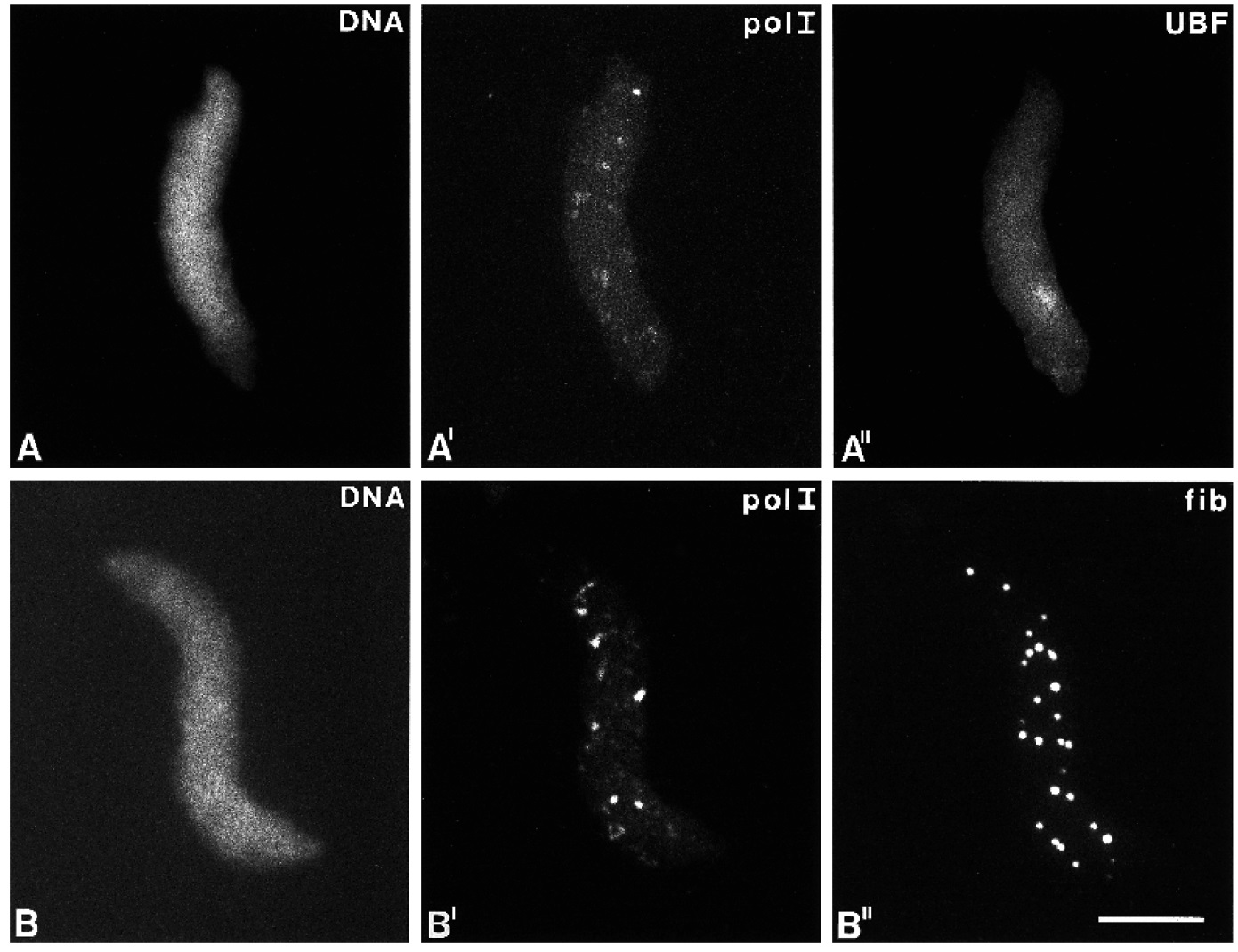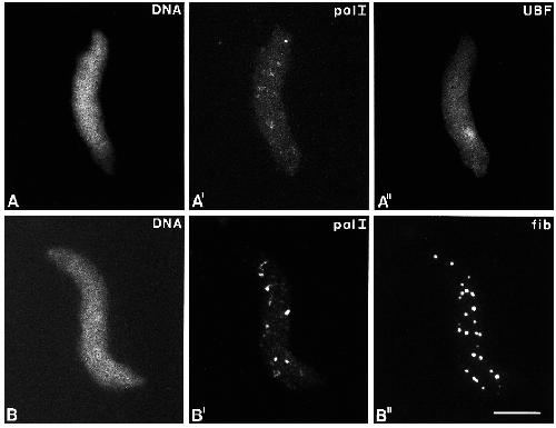immunofluorescence microscopy with antibodies directed to pol I (A¢) and UBF (A¢¢) reveals that pol I is concentrated at several sites scattered