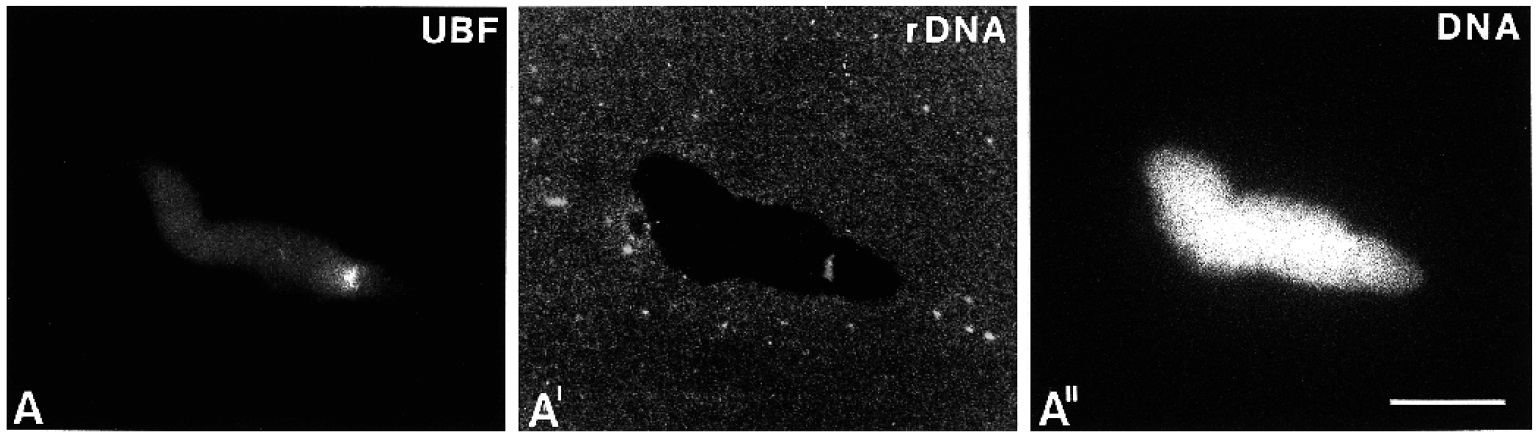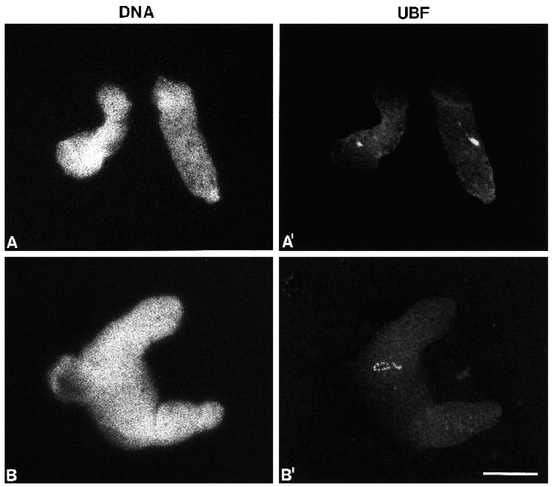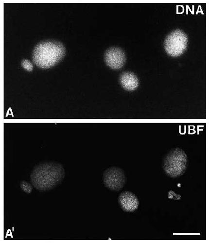 UBF as shown by immunofluorescence with UBF-antibodies (A¢).