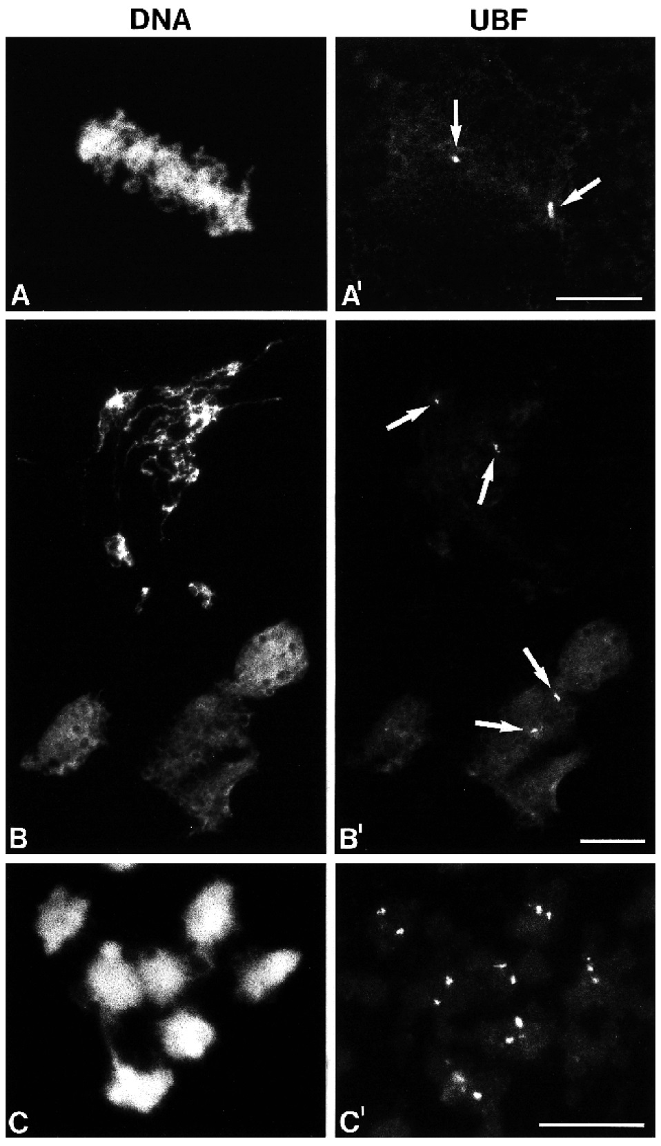 UBF-dots each (indicated by arrows; the chromatin