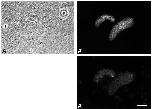 (B¢). The corresponding phase contrast images are shown in A-C. Bar, 20 um.