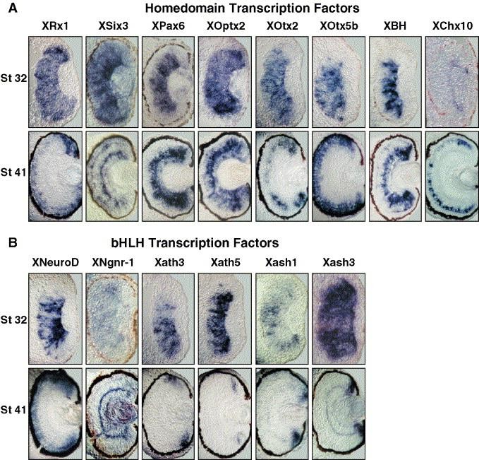 Genes referenced: ascl1 ascl4 atoh7 barhl2 crx neurod1 neurod4 neurog2 otx2 pax6 rax six3 six6 vsx2
