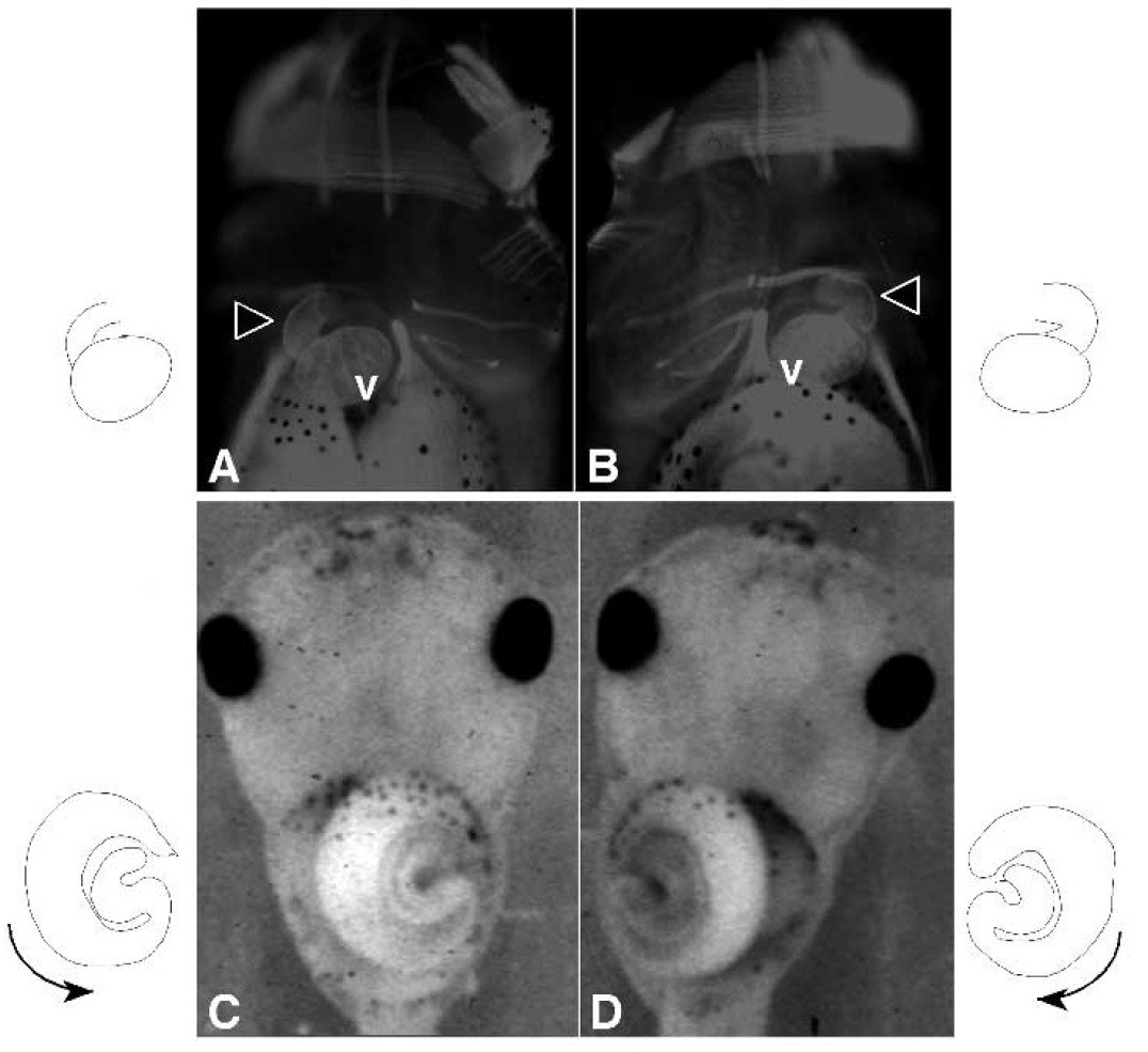 An association has been noted previously in chick, mouse and frog embryos between asymmetric nodal-related gene expression and embryonic situs, implying an evolutionarily conserved role in left-right specification. Of the four Xenopus nodal-related genes expressed during gastrulation, only Xnr-1 is re-expressed unilaterally in the left lateral plate mesoderm at neurula/tailbud stages. Here, we show that the asymmetric expression of Xnr-1 can be made bilaterally symmetric by right-sided microinjection of RNA encoding active Xenopus hedgehog proteins. Moreover, we provide the first evidence that Xnr-1 expression per se is a causal factor in left-right axis determination. When plasmids expressing Xnr-1 were delivered unilaterally to the right side of Xenopus embryos, a reversed laterality of both the heart and gut (homotaxic reversal) was induced in 40% of surviving embryos, while an additional 10-20% showed reversal of the heart or gut alone (heterotaxia). This effect on laterality was specific to Xnr-1, since neither Xnr-2 nor Xnr-3 plasmids had this activity. In addition, we find that Xnr-1 and Xnr-2, which have both been defined as mesoderm inducers from overexpression studies, show quantitative differences in their ability to induce dorsal mesoderm. Together, these findings suggest that the various Xnrs perform substantially different functions during Xenopus embryogenesis. Moreover, they strongly support the hypothesis that left lateral plate expression of nodal-related genes is a causative factor in the determination of asymmetry in vertebrate embryos.