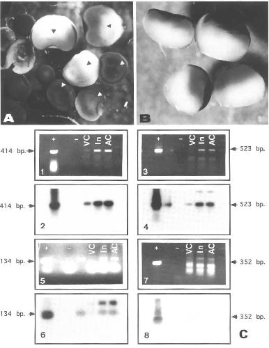 numbers correspond ro southern hybfldizations with f32Pl labeled specific probes. AC, RT/PCR camed out on total RNA extracted from animal caps, (thickness,., 113of the oocyte diameter). In, RT/PCR on rotal RNA extracted from the mtermediate zone (thickness,=, 113of the oocyte diameter); VC, RT/PCR on total RNA extracted from the vegetal pole (thickness = 1/3 of the oocyte diameter);(+), positive control,(-), negarive control (PCR without template DNA).