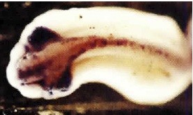 ets2 ( v-ets avian erythroblastosis virus E26 oncogene homolog 2) gene expression in Xenopus laevis embryos, NF stage 36/37, as assayed by in situ hybridization, lateral view, anterior left, dorsal up.
