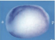 msx1 (msh homeobox 1) gene expression in Xenopus laevis embryo via in situ hybridization, NF stage 17, dorsal view, anterior up.