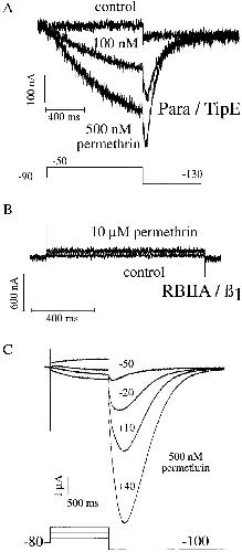 Tatebayashi, Differential mechanism of action of the pyrethroid tetramethrin on tetrodotoxin-sensitive and tetrodotoxin-resistant sodium channels. 1994, Pubmed