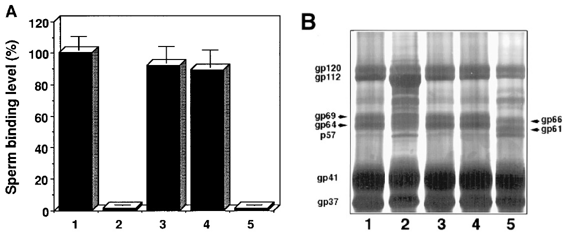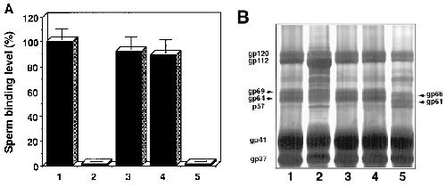 VE, and gp66/61 from FE were used as competitors in the sperm binding competition assays. (B) Heat-dissolved total envelope proteins