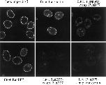 Figure 10. Transportin and RanBP7 compete with each other for NPC binding. Importin-β, transportin, and RanBP7 were labeled directly with fluorescein and incubated at a concentration of 50 nM with permeabilized cells in the presence of Ran and an energy-regenerating system. Where indicated, the NPC binding was competed with 2 μM of unlabeled RanBP7 or transportin. For analysis, the samples were fixed, and nuclei were spun onto coverslips and examined by confocal fluorescence microscopy. |