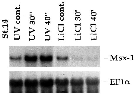 Fig. 1. Expression of Xmsx-1 in ventralized and dorsalized embryos.