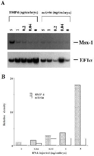 (A) BMP-4 or activin RNA at the concentration indicated was injected