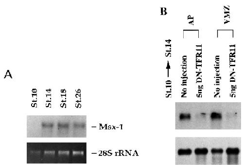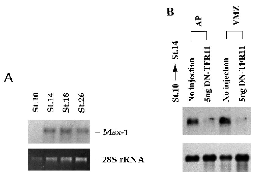 Fig. 4. DN-TFR11 RNA blocks the expression of Xmsx-1.