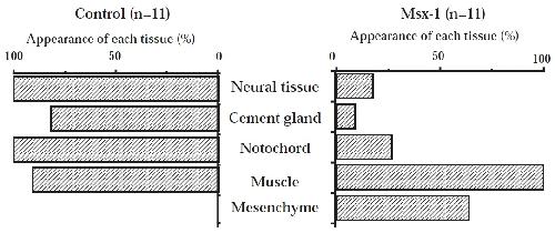 Xmsx-1 modifies mesodermal tissue pattern along dorsoventral axis in Xenopus laevis embryo.