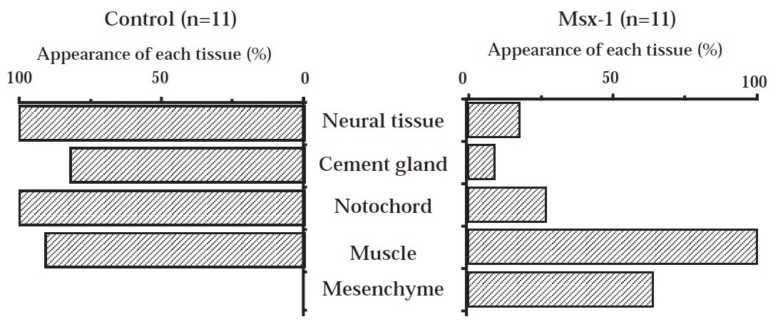 injected with capped Xmsx-1 RNA (5 ng/embryo), and these
