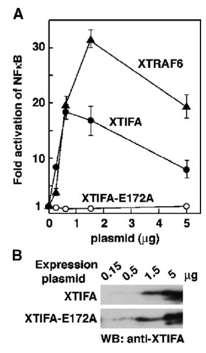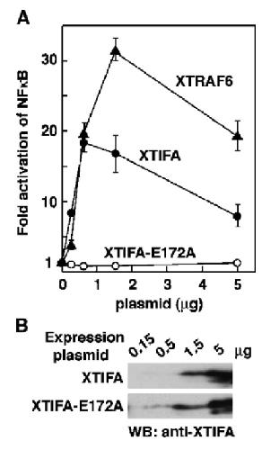 Fig. 3. Activation of NFnB by XTRAF6 and XTIFA. (A) Luciferase